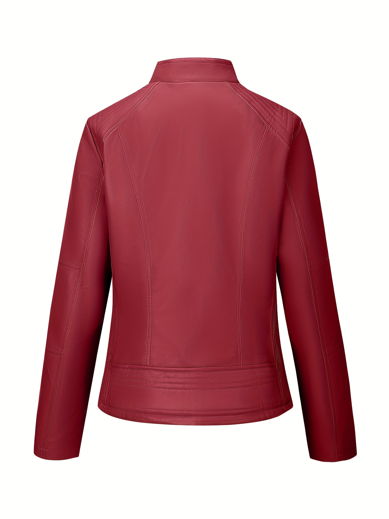 [Brown Biker Jacket] Brown Faux Leather Plus Size Women's Casual Biker Jacket | Short Motorcycle Jacket with Zipper Closure, Turn-Collar & Long Sleeves for Spring/Fall, Versatile Outerwear, Sleek Design, Durable Fabric