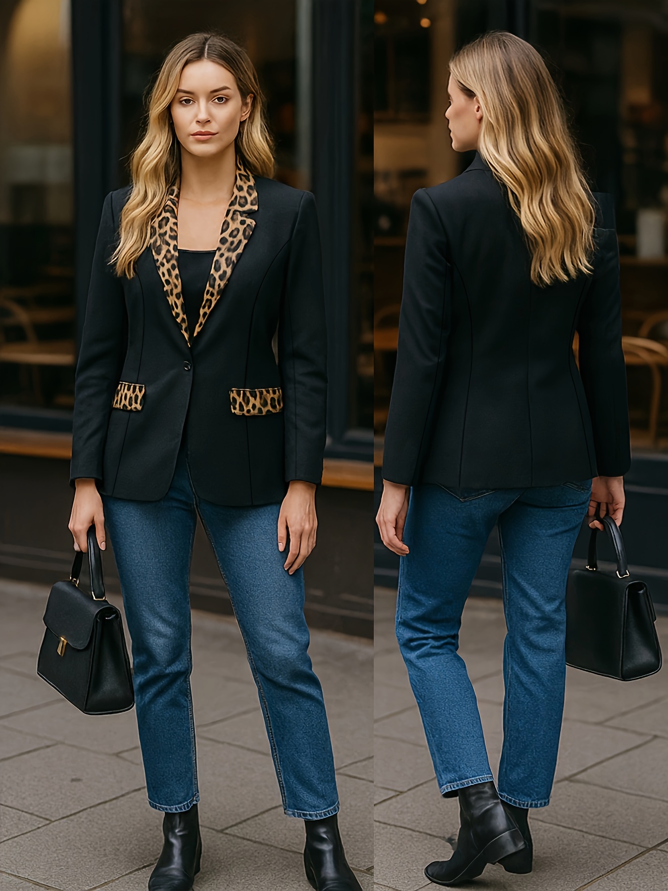 Women's Professional Blazer - Elegant Black & Golden button-front Jacket, Structured H-Silhouette for Office, Formal Events, Everyday - Machine Washable Non-Stretch Blazer Coat