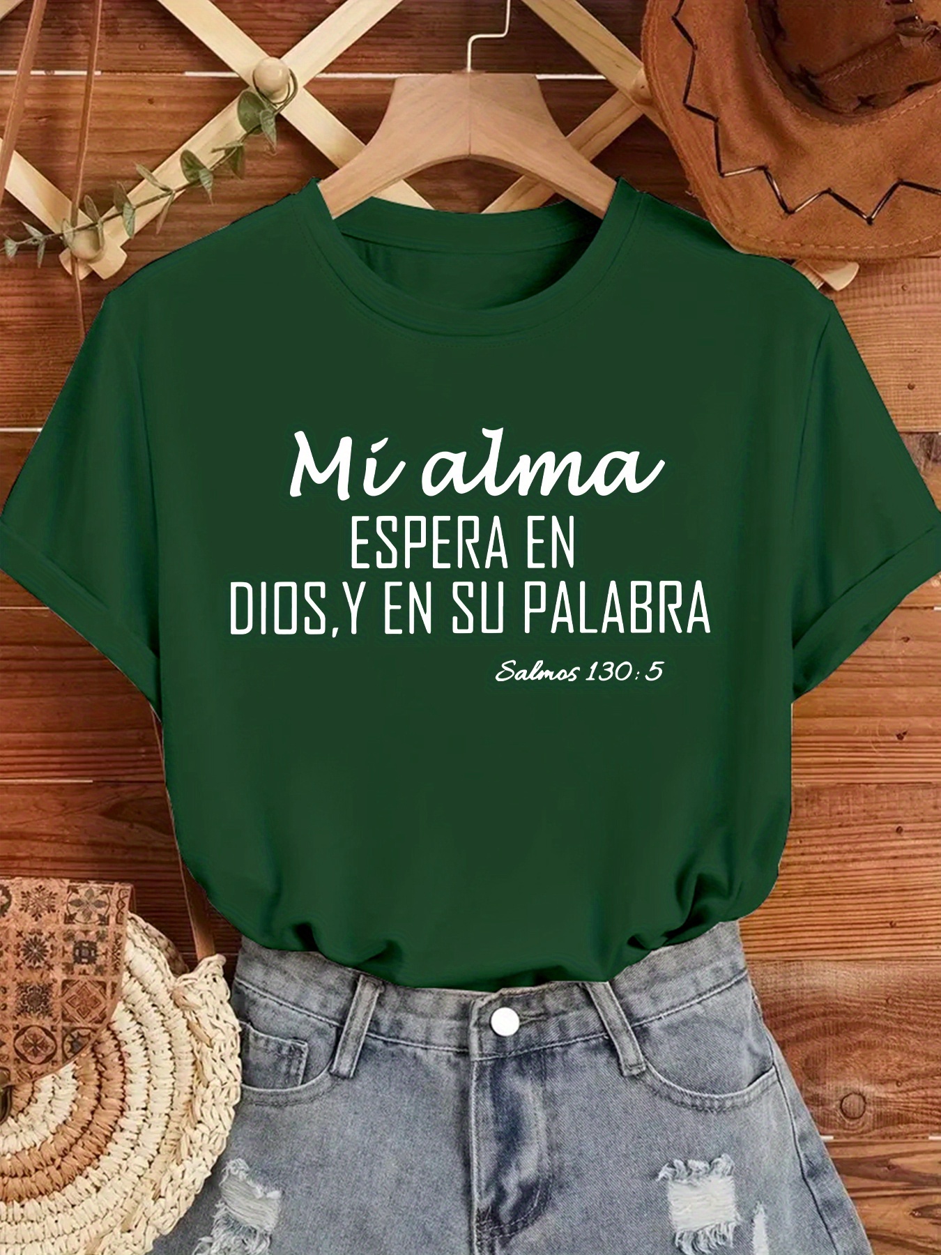 Women's Casual Short Sleeve T-Shirt - Vibrant Purple with White Spanish Scripture Letter Print (Isaiah 30:5), 100% Polyester Knit, Lightweight 180g All-Season Top, Machine Washable